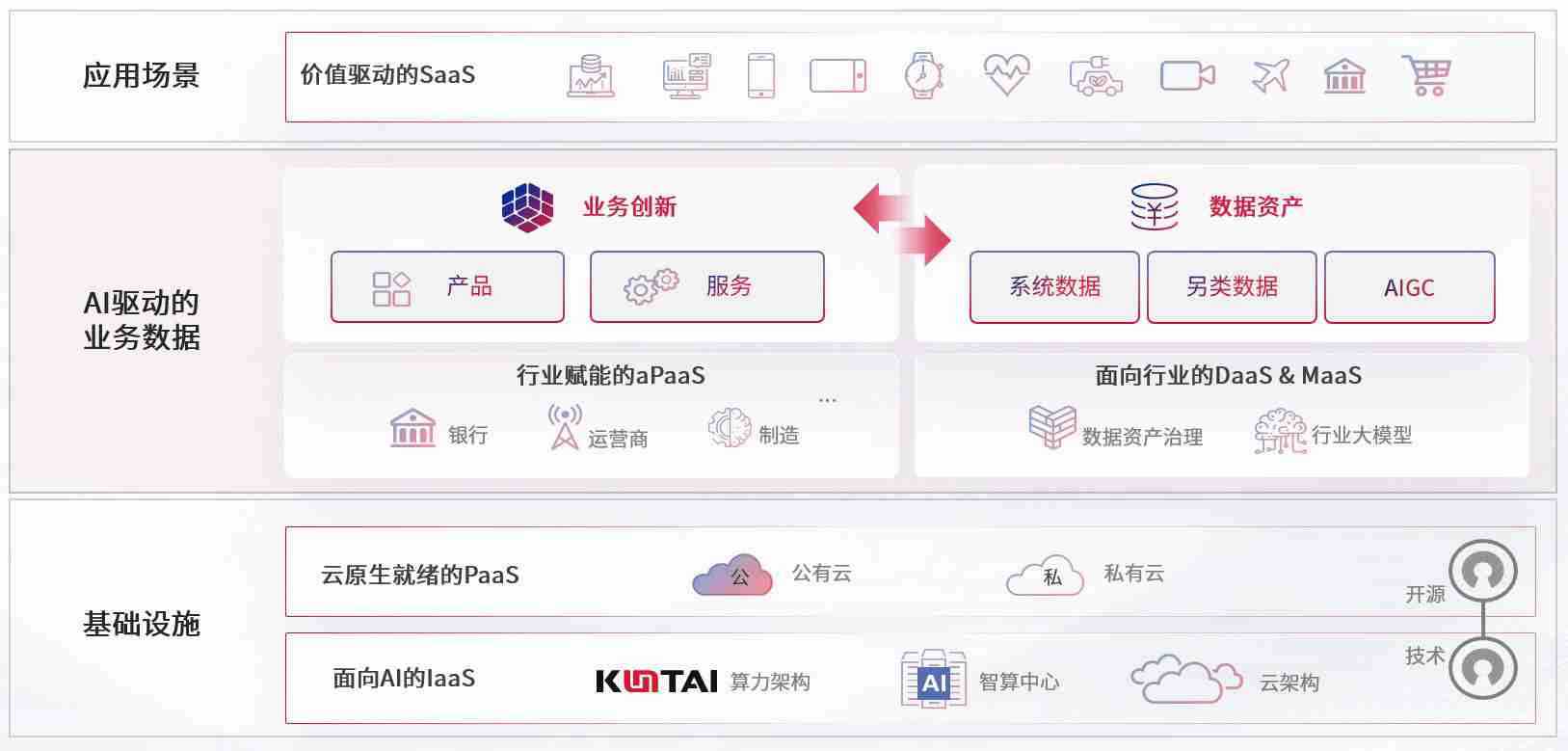 数字时代,,围绕企业数字化转型的关键要素,,,,9b.com数码开创性的提出数云融合战略和技术体系框架,,着力在云原生、、、、数字原生、、、AI原生和信创产业上架构产品和服务能力,,为处在不同数字化转型阶段的快消零售、、、、汽车、、金融、、医疗、、、、政企、、、教育、、、运营商等行业客户提供泛在的敏捷IT能力和融合的数据驱动能力,,构建跨界融合创新的数字业务场景和新业务模式,,,,助力企业级客户建立面向未来的核心能力和竞争优势,,,,全面推动社会的数字化、、、、智能化转型升级。。